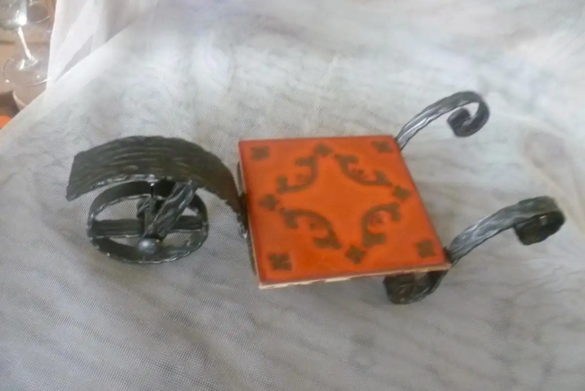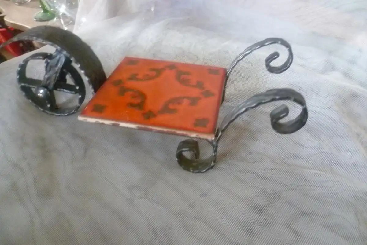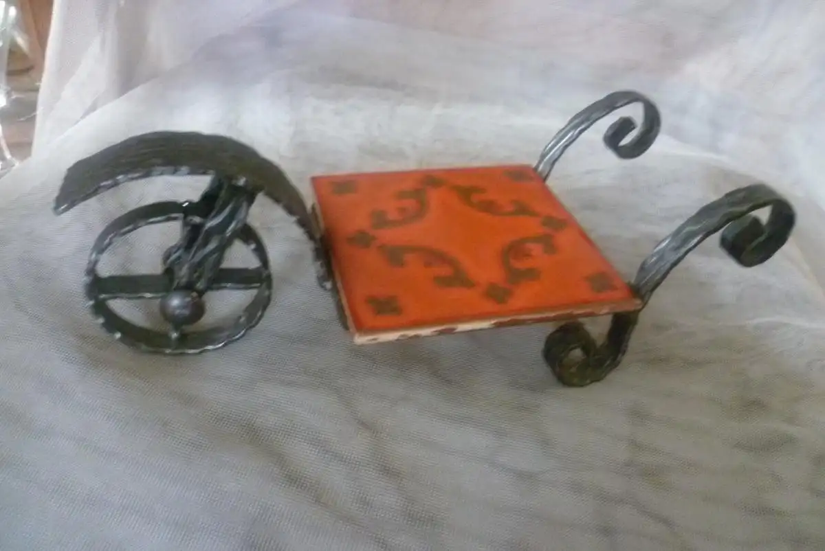Blumenback in Form eines Schubkarren dieser ist aus geschmiedeten Eisen in schwarz patiniert V&B Fliese Mid Century 60 /70 Jahre der Hingucker!