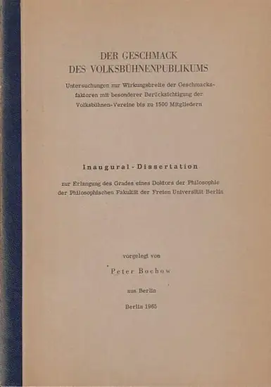 Bochow, Peter: Der Geschmack des Volksbühnenpublikums. Untersuchung zur Wirkungsbreite der Geschmacksfaktoren mit besonderer Berücksichtigung der Volkbühnen-Vereine bis zu 1500 Mitgliedern. Inaugural-Dissertation.
