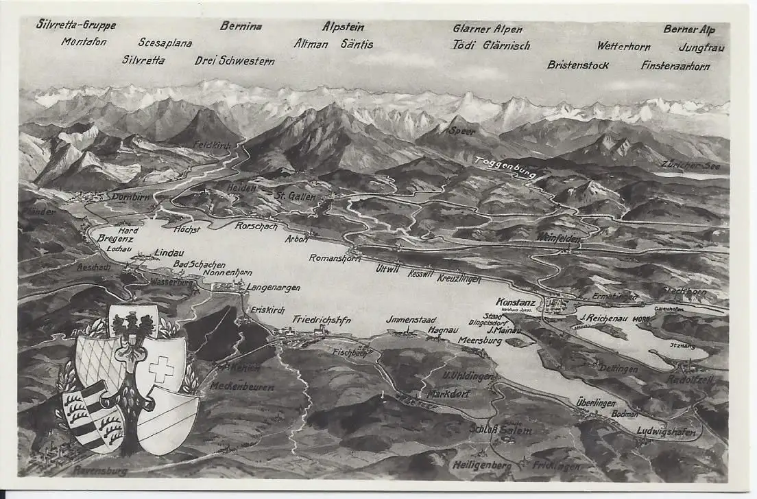 Bodensee Panorama AK m. Konstanz, Überlingen, Langenargen, Eriskirch etc. #1967