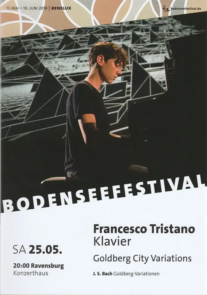 Titel: Programmheft FRANCESCO TRISTANO KLAVIER GOLDBERG CITY VARIATIONS 25. Mai 2019 Ravensburg Konzerthaus 31. Bodenseefestival