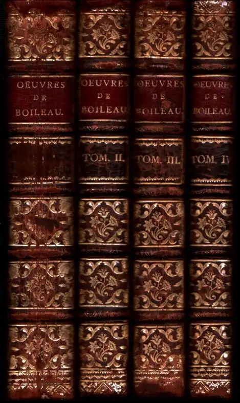 N. Boileau-Despréaux (1636-1711), befreundet mit Racine u. Molière, machte sich einen Namen als witziger u. bissiger Satiriker, der zunächst seine Texte in den Pariser Salons vortrug. - Die Ausgabe enthält Satiren, Briefe, Gesänge und Epigramme, Abhandlungen und kritische Reflektionen sowie einen biographischen Abriß von Pierre Desmaizeaux (1673?-1745). - Einbände berieben, Kapitale mit Abschabungen, innen gebräunt/braunfleckig