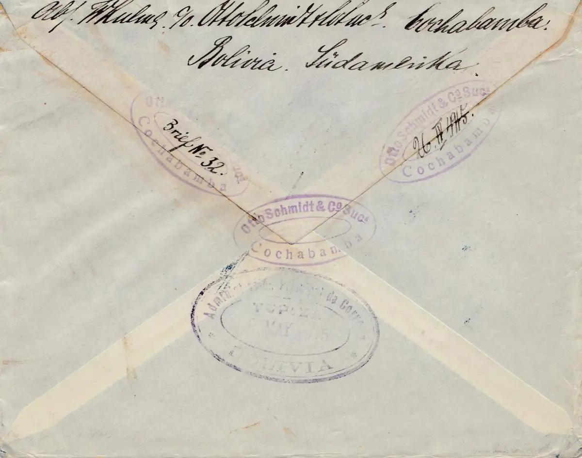 Bolivia/Bolivien: 1915 Cochabamba via Buenos Aires to Berlin