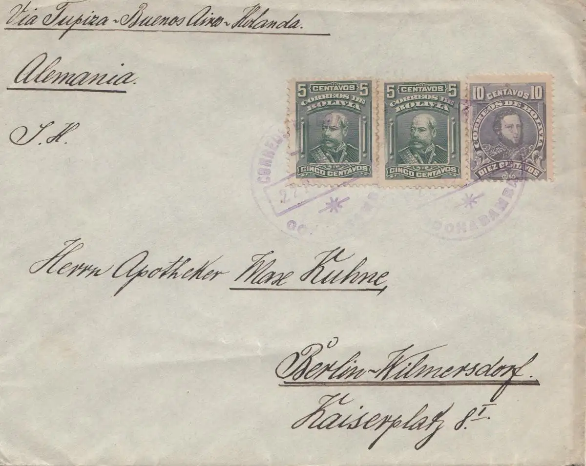 Bolivia/Bolivien: 1915: Cochabamba via Buenos Aires to Berlin