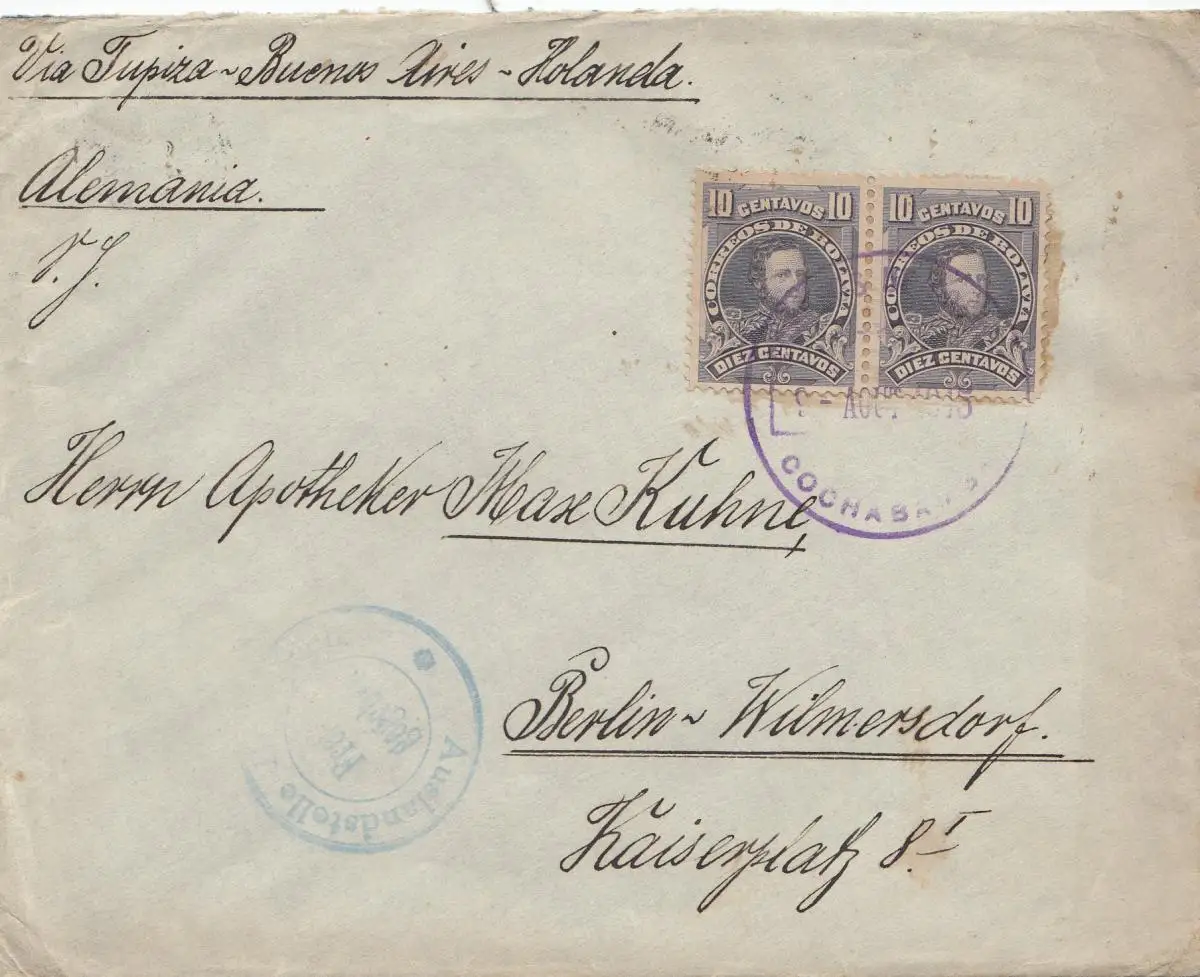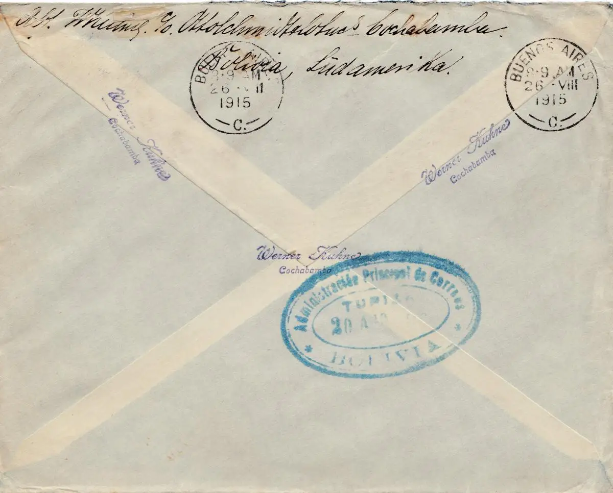 Bolivia/Bolivien: 1915: cover Cochabamba via Buenos Aires to Berlin/Germany