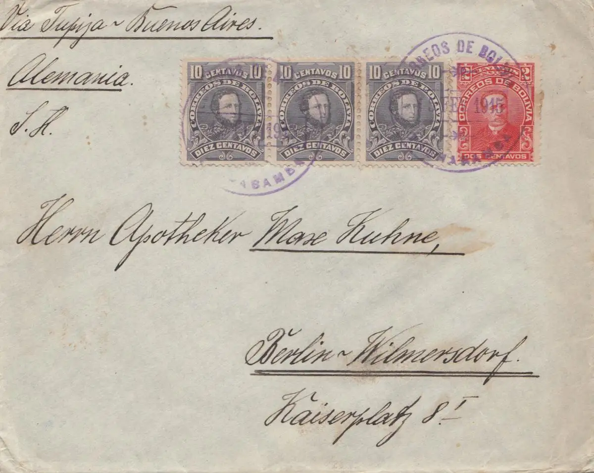 Bolivia/Bolivien: 1915: cover Cochabamba via Tupiza -Buenos Aires to Berlin