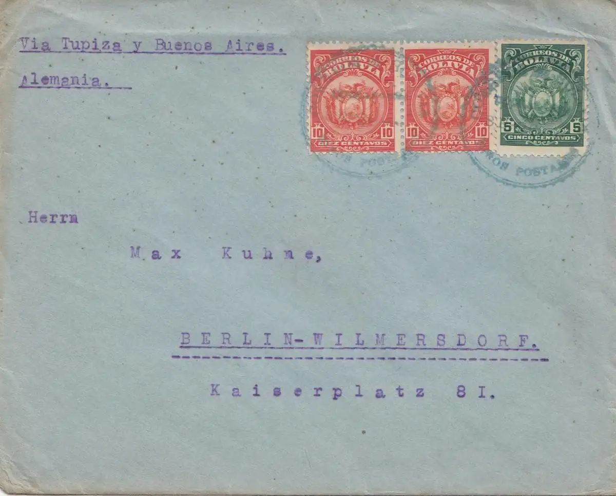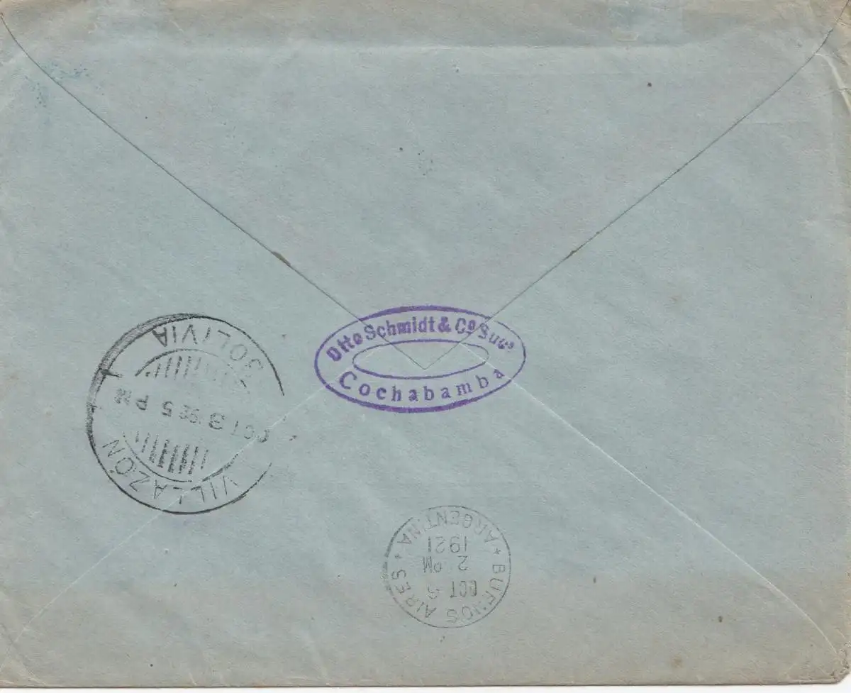 Bolivia/Bolivien: 1921 Cochabamba via Buenos Aires to Germany/Berlin
