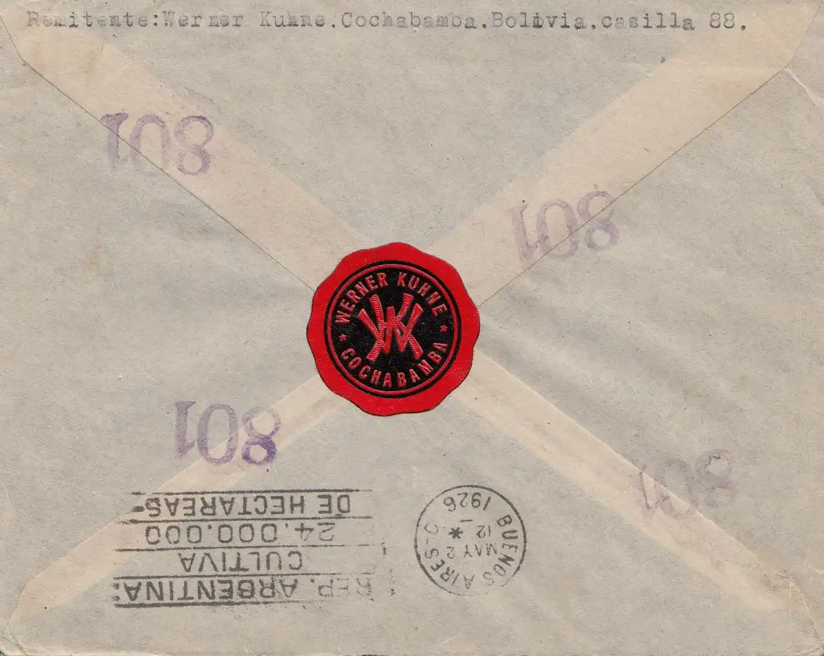 Bolivia/Bolivien: 1926 Cochabamba via Tupiza-Buenos Aires to Berlin/Germany