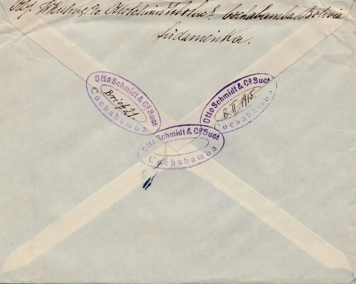 Bolivien: 1915: cover Cochabamba via Tupiza -Buenos Aires to Berlin