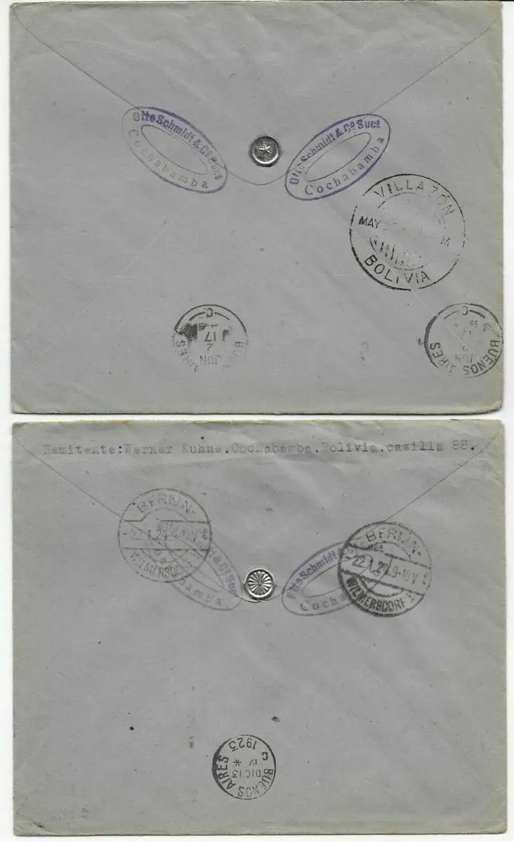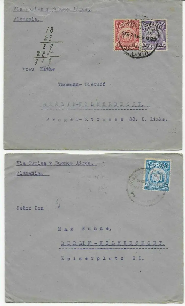 Bolivien: Via Tupiza y Buenos Aires, 8 Briefe, ca. 1921-1924