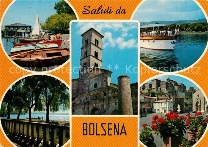 Bolsena Hafen Strand Promenade Ausflugsboot Kirche Platz Altstadt Bolsena postalisch gelaufen 1975 Erhaltung siehe scans [FriedD77] Frierer