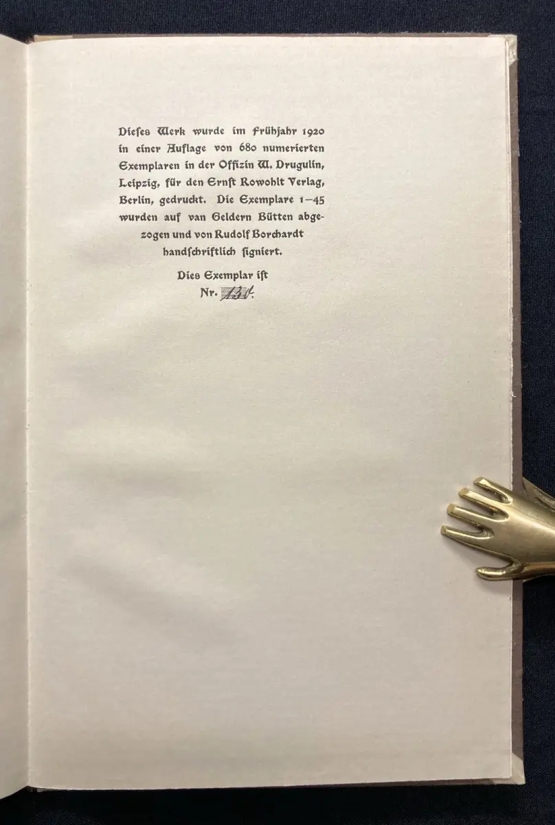 Grüninger/Tagahrt 30;Wilpert/Gührimg 17; Katalog Marbach 29; Borchardt. Heymel. Schröder 285; Sammlung Jordann 183