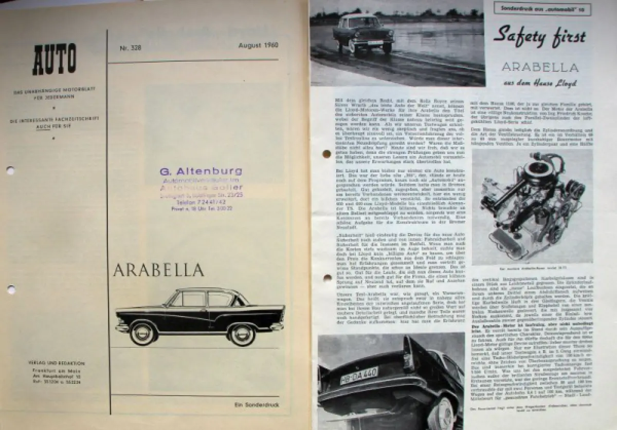 Borgward Arabella de Luxe Modellprogramm 1960 Automobil-Pressemappe (7000)
