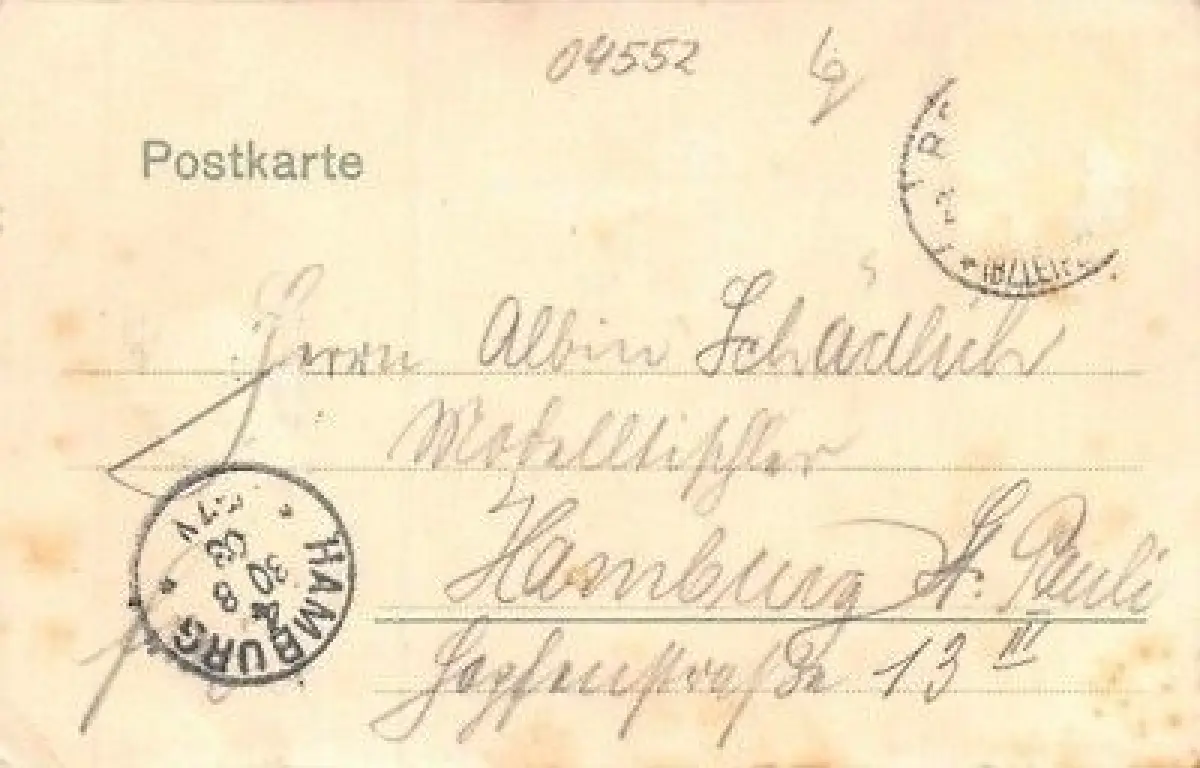 Rückseite: gelaufen 1903 nach Hamburg