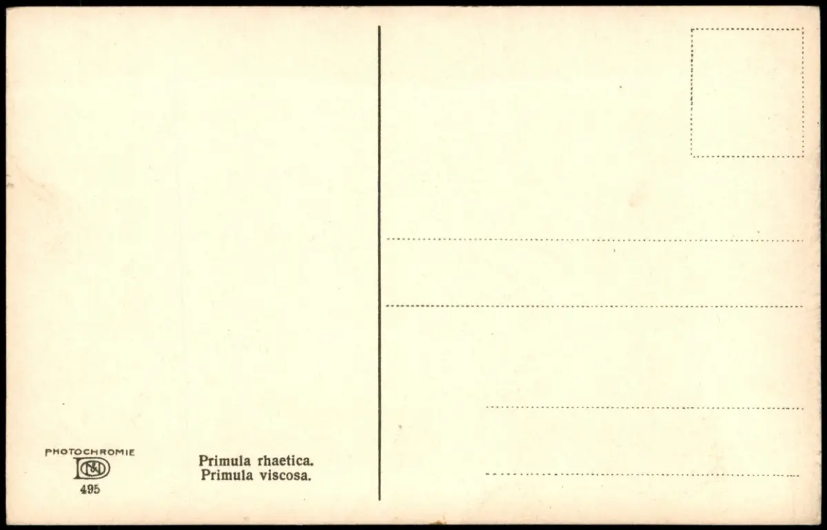 Botanik PHOTOCHROMIE Primula viscosa. Primula rhaetica. Pflanzen Alpen 1912