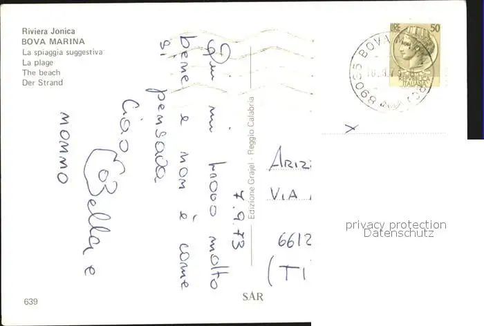 Bova Marina Strand Italien postalisch gelaufen 1973 Erhaltung siehe scans [NatalD47 kv014box] NataID47