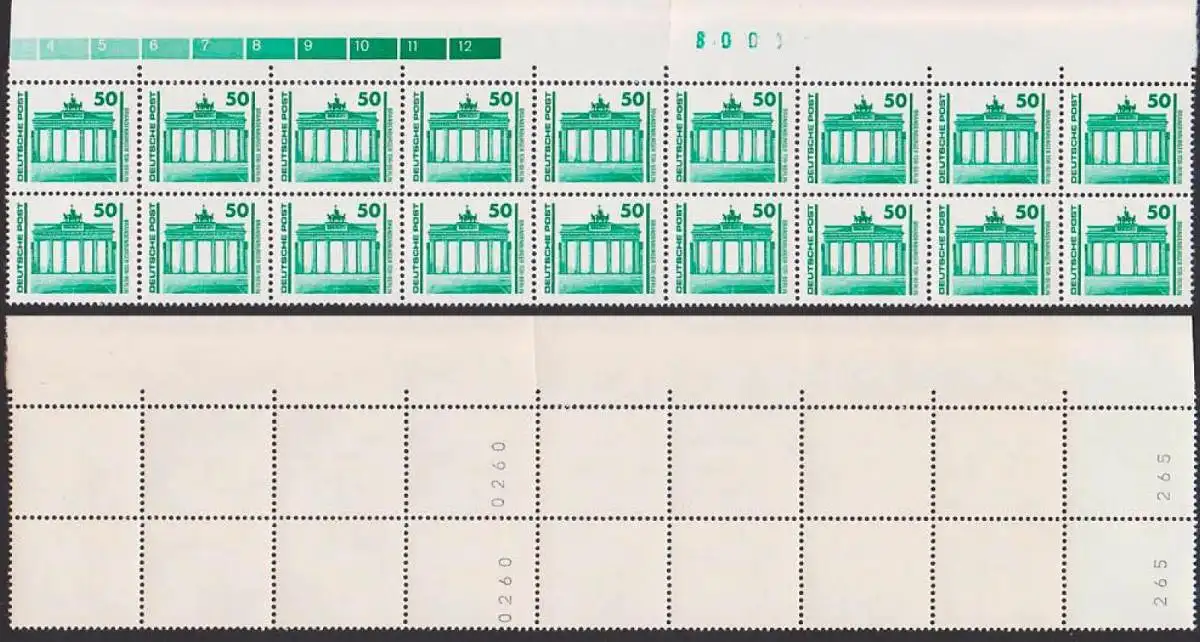 Brandenburger Tor Berlin 9er Streifen im Paar mit Oberrand aus Rolle, postfrisch, Perforation teils angetrennt