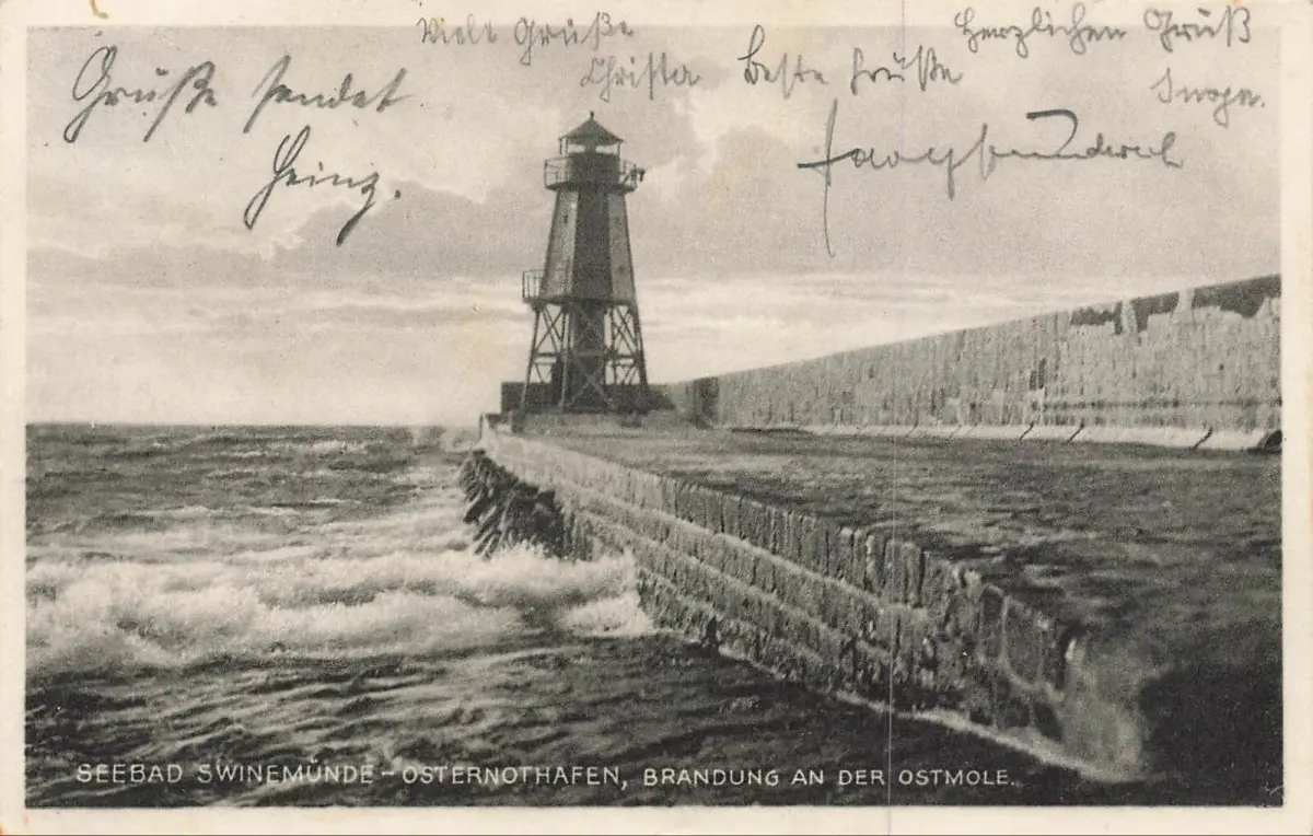 Brandung an der Ostmole Osternothafen Swinemünde Pommern Postkarten AK 1934