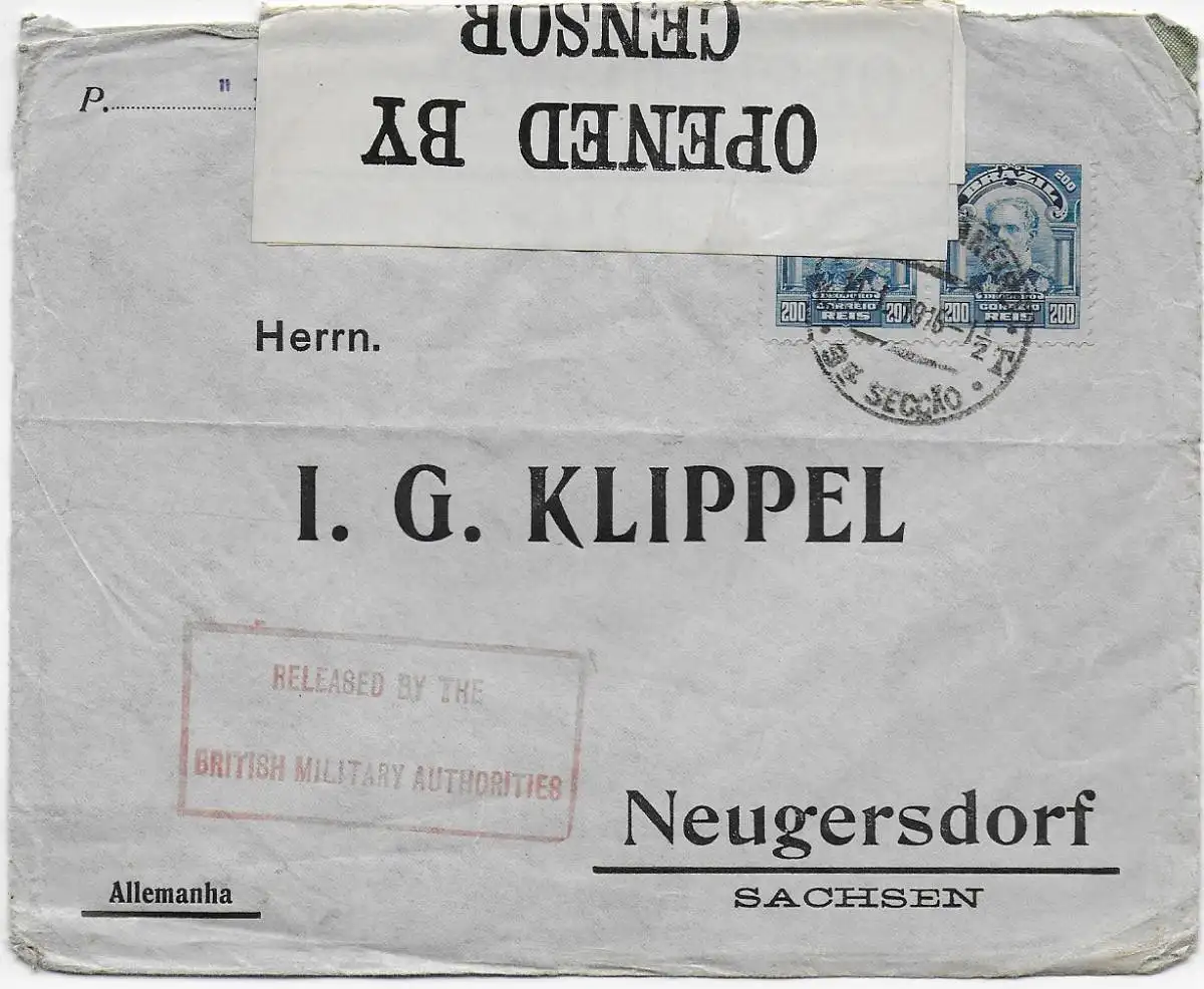 Brasilien 1916: Rio de Janeiro to Neugersdorf, British Zensur - Censor