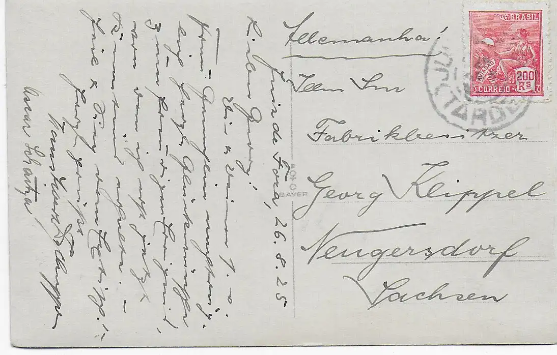 Brasilien 1925: Fotokarte Rio Branco nach Neugersdorf