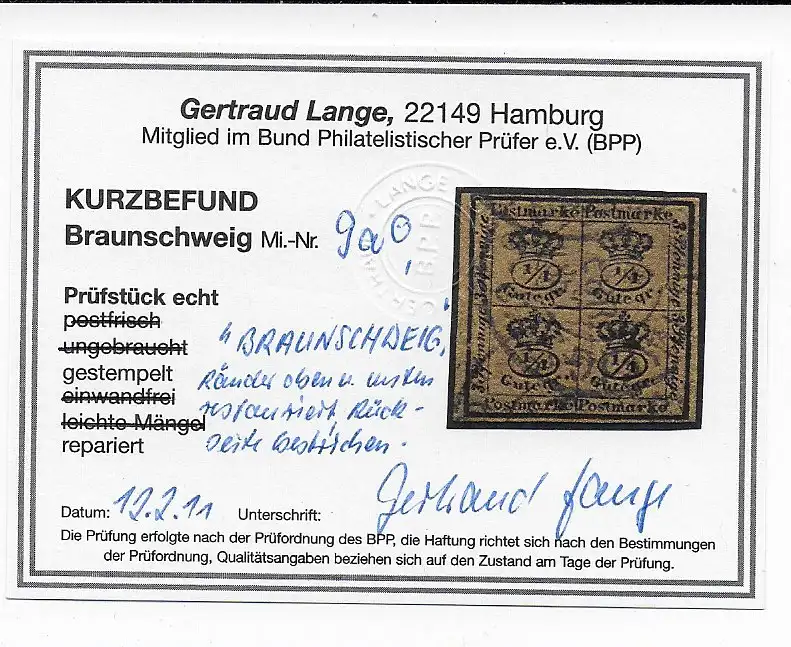 Braunschweig: MiNr. 9a, gestempelt, BPP geprüft