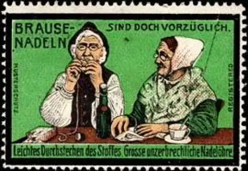 Leichtes Durchstechen des Stoffes. Grosse unzerbrechliche Nadelöhre., Größe/Zustand: 4x5 , guter Zustand, Original alte Reklamemarke die seinerzeit für die Werbung benutzt wurde