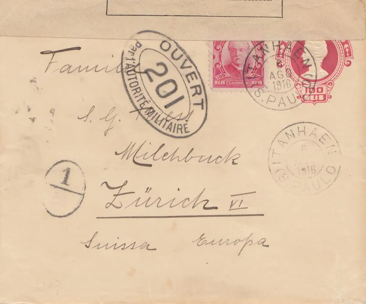 Brazil: 1916: Cover Itanhaen - S. Paolo to Zürich/Switzerland - Censor