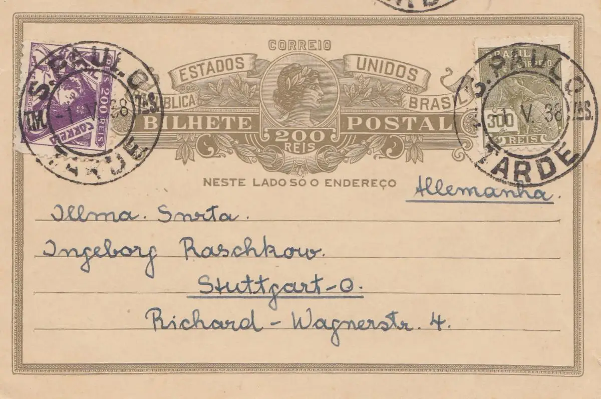 Brazil: 1938: S. Paulo to Stuttgart - post card