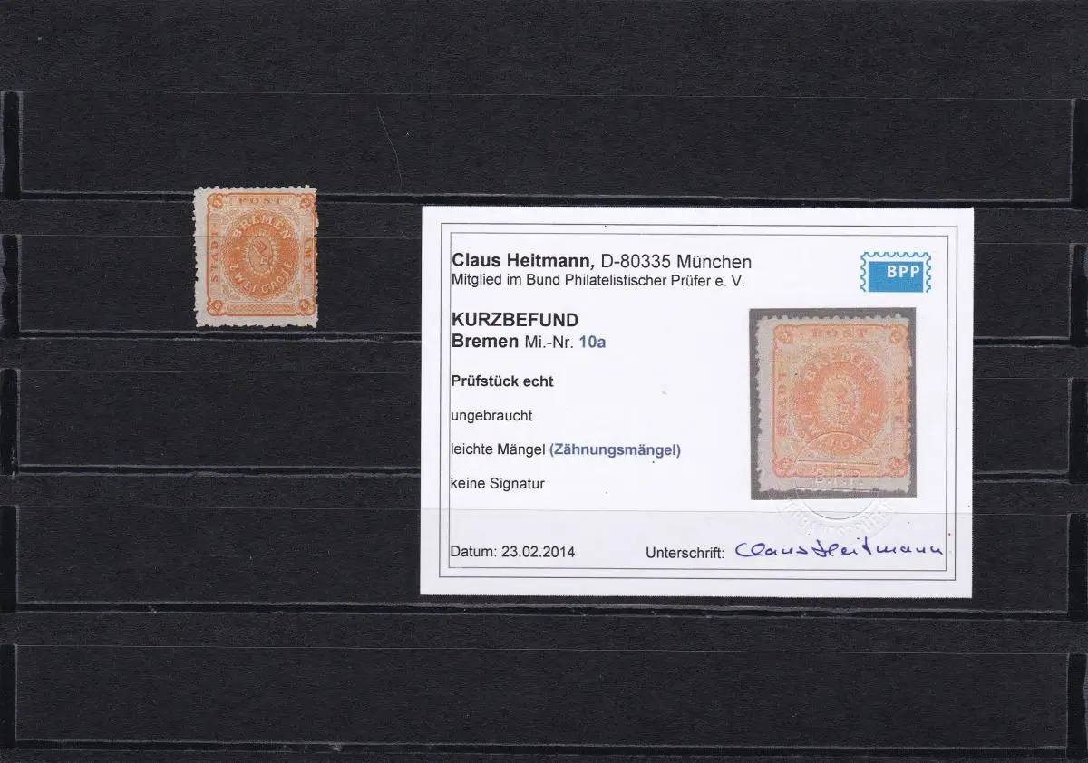 Bremen: MiNr. 10a, ungebraucht, BPP Befund