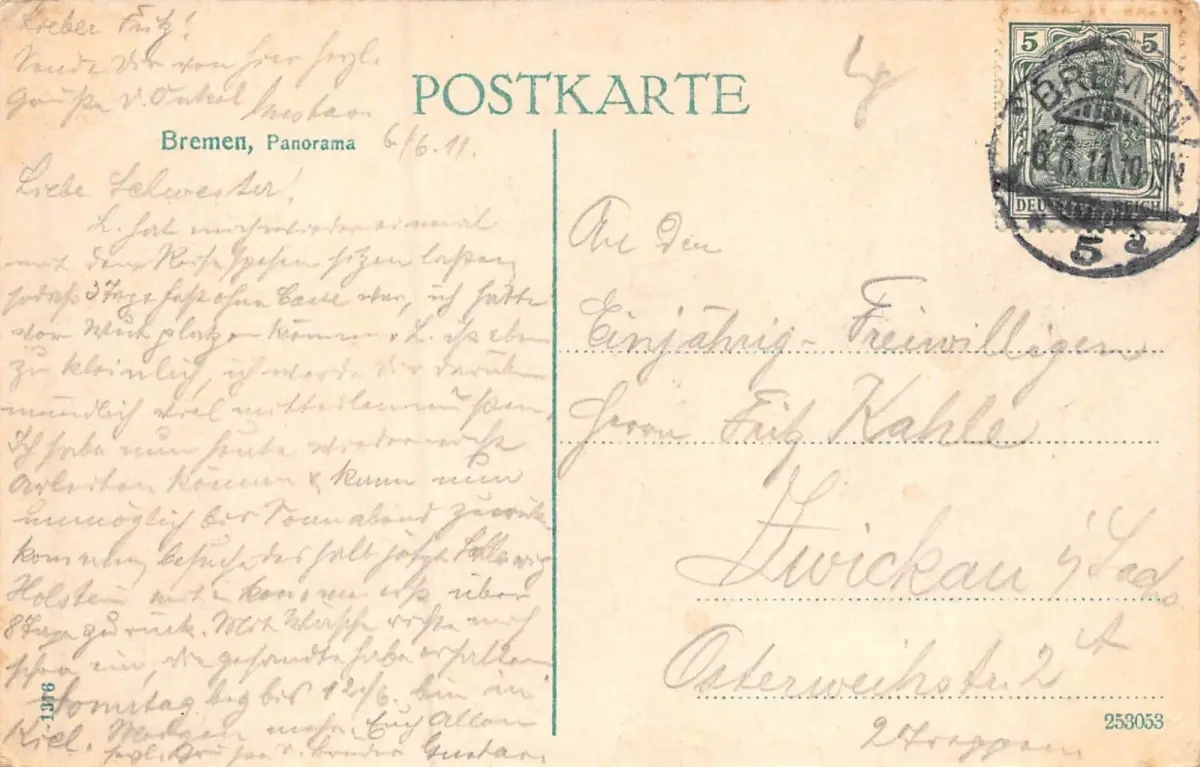 Rückseite: gelaufen 1911 von Bremen