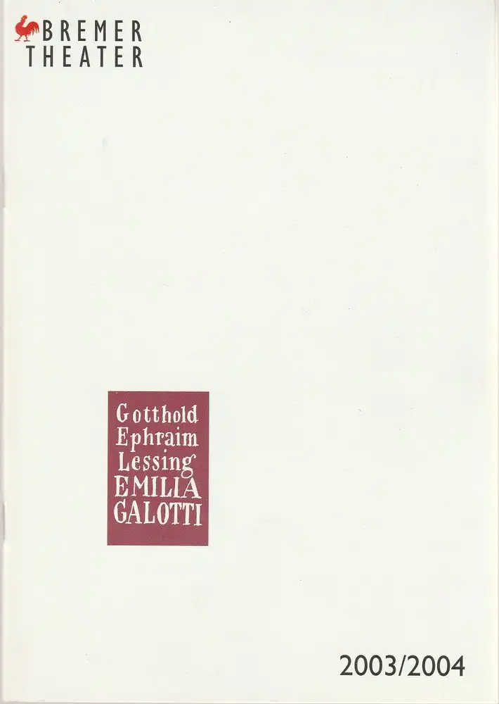 Bremer Theater, Klaus Pierwoß, Helge-Björn Meyer: Programmheft Gotthold Ephraim Lessing EMILIA GALOTTI Premiere 19. Mai 2004 Schauspielhaus Spielzeit 2003 / 2004.