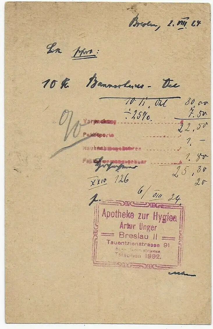 Breslau 1924 nach Endenich, Apotheke