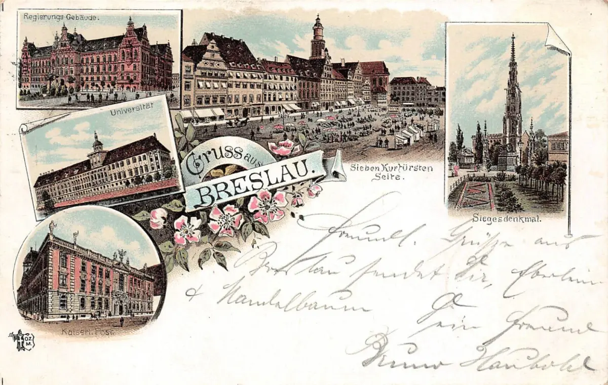 Breslau Markt Post Siegesdenkmal Litho Postkarte 1897