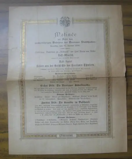 Breslauer Stadt Theater: Programmzettel zur Matinée zur Feier des hundertjährigen Bestehens des Breslauer Stadttheaters am Sonntag, den 16. Januar 1898. 1798 - 1898.