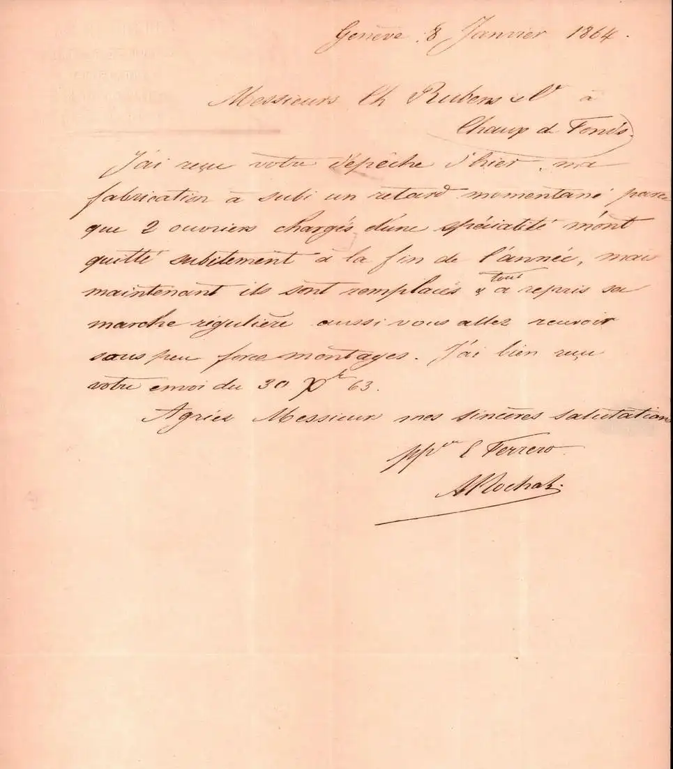 Brief an Ch. Rubens in La Chaux-de-Fonds 1864 !!!