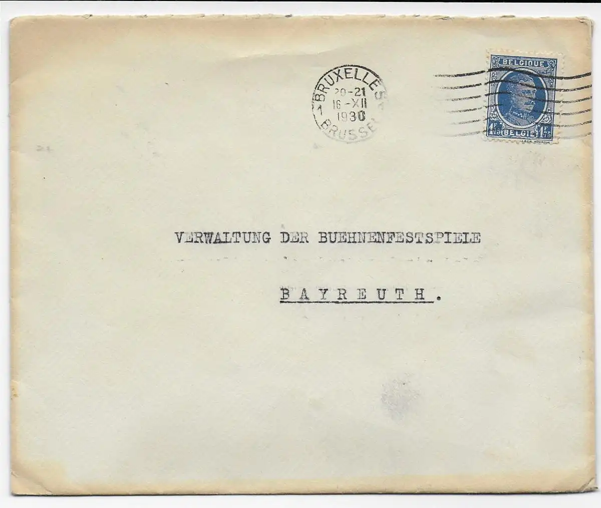 Brief aus Brüssel 1930 nach Bayreuth, Festspiele, Thema: Wagner