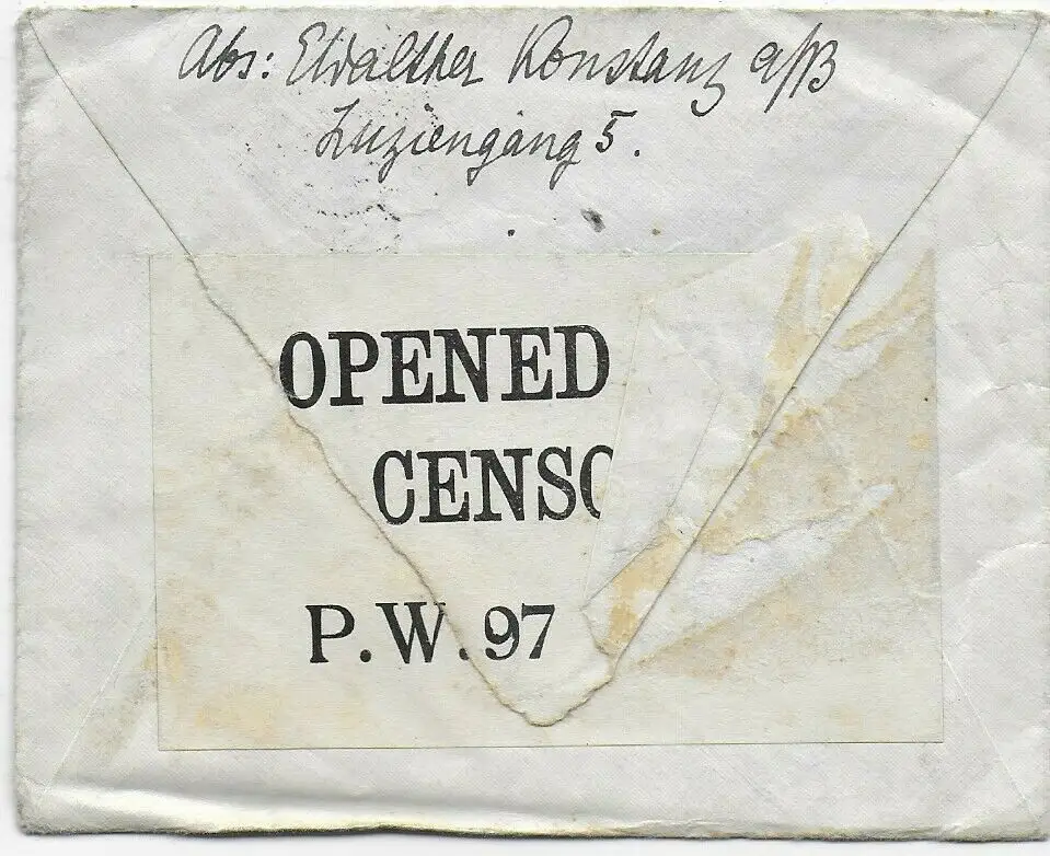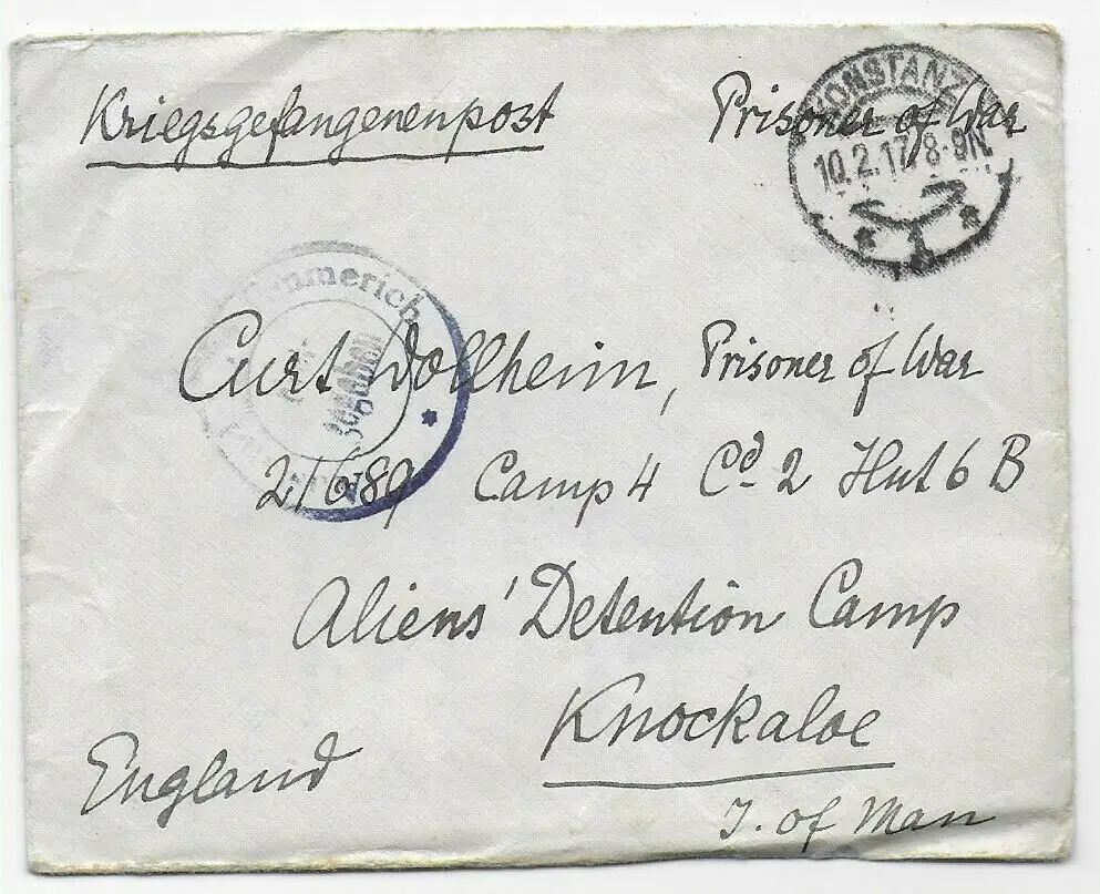 Brief aus Konstanz 1917 nach Knockaloe Internment Camp, Isle of Man, Kgf PoW