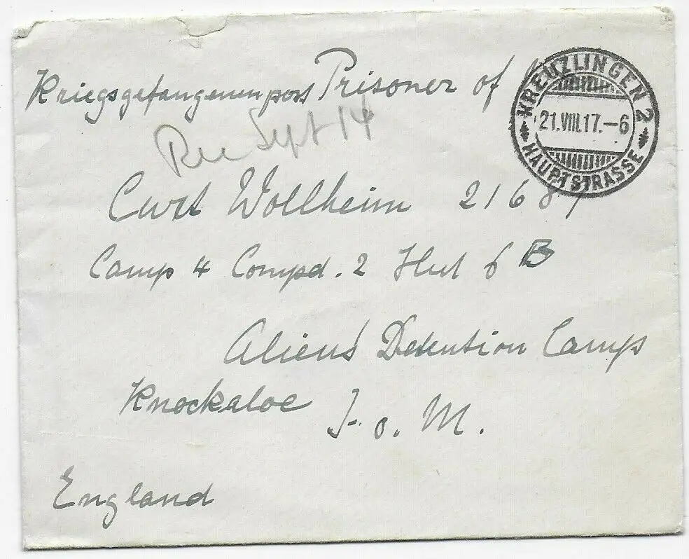 Brief aus Kreuzlingen 1917 nach Knockaloe Internment Camp, Isle of Man, Kgf, PoW