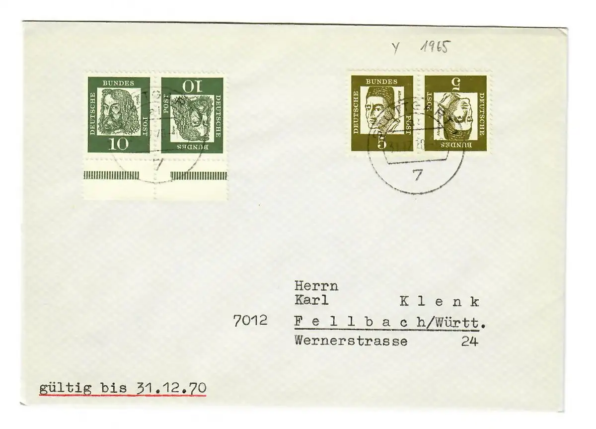 Brief aus Stuttgart nach Fellbach 1970 aus MH