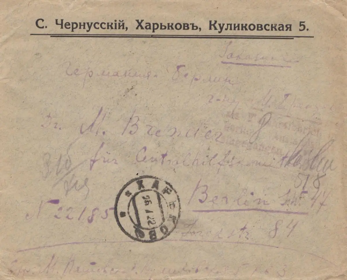 Brief nach Berlin aus Russland 1922 mit Bahnpoststempel