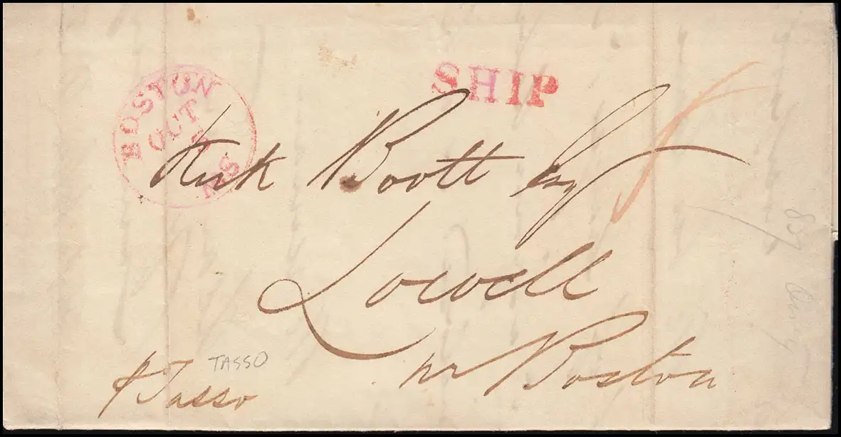 Brief vom 11.8.1832 ab Liverpool nach Bosten rote Stempel SHIP und BOSTEN 5.10.