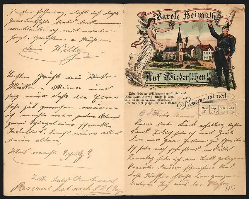 Briefkopf Preussischer Reservesoldat in Uniform und eine Fee mit einem Blumenstrauss, Heimatansicht