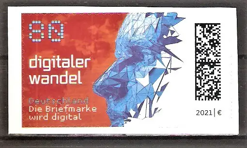 Briefmarke BRD Mi.Nr. 3592 A ** Digitaler Wandel 2021 (selbstklebend aus Folienblatt) / Computergraphik eines menschlichen Gesichte
