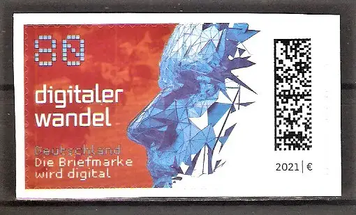 Briefmarke BRD Mi.Nr. 3592 A ** Digitaler Wandel 2021 (selbstklebend aus Folienblatt) / Computergraphik eines menschlichen Gesichts