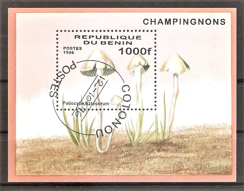 Briefmarke Benin Mi.Nr. 855 o / Block 22 o Pilze 1996 / Aztekischer Kahlkopf (Psilocybe aztecorum)