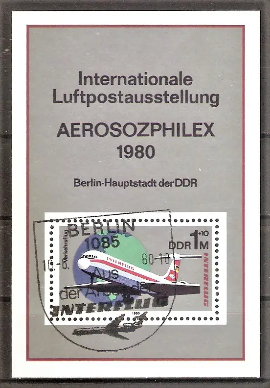 Briefmarke DDR Block 59 o (Mi.Nr. 2520) ESST BERLIN / 25 Jahre INTERFLUG / Internationale Luftpostausstellung AEROSOZPHILEX 1980