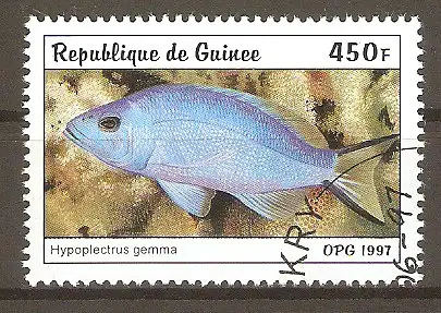 Briefmarke Guinea Mi.Nr. 1649 o Fische 1997 / Blauer Hamletbarsch (Hypoplectrus gemma) #20241159