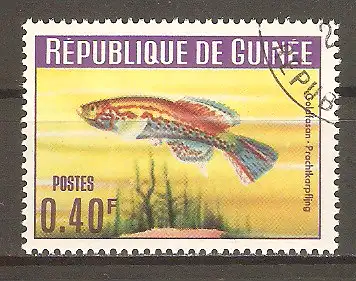 Briefmarke Guinea Mi.Nr. 215 A o Fische 1964 / Goldfasankärpfling (Aphyosemion occidentale) #20241122