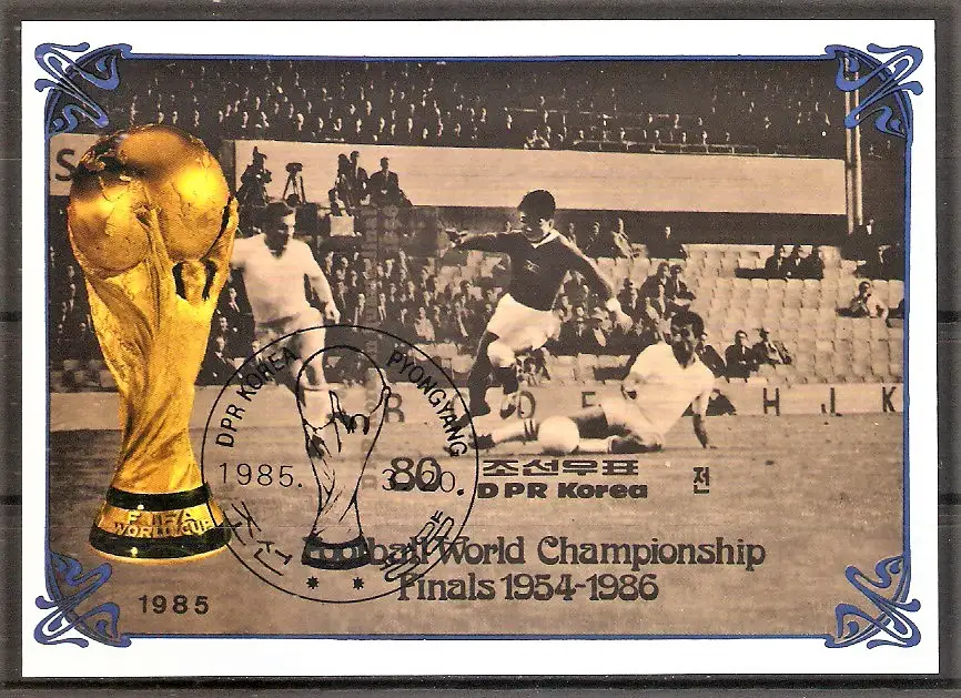 Briefmarke Korea-Nord Block 198 B o (Mi.Nr. 2647 B) Endspiele der Fussball-Weltmeisterschaften 1985