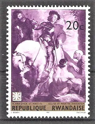 Briefmarke Ruanda Mi.Nr. 218 A ** Caritas 1967 / Gemälde "Heiliger Martin" von Anthonis van Dyck