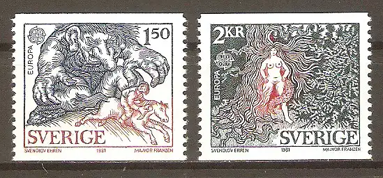 Briefmarke Schweden Mi.Nr. 1141-1142 ** Europa CEPT 1981 - Folklore / Troll & Waldfrau / Kompletter Satz ! #20241350